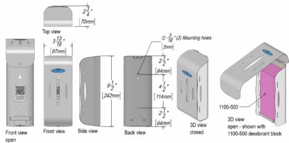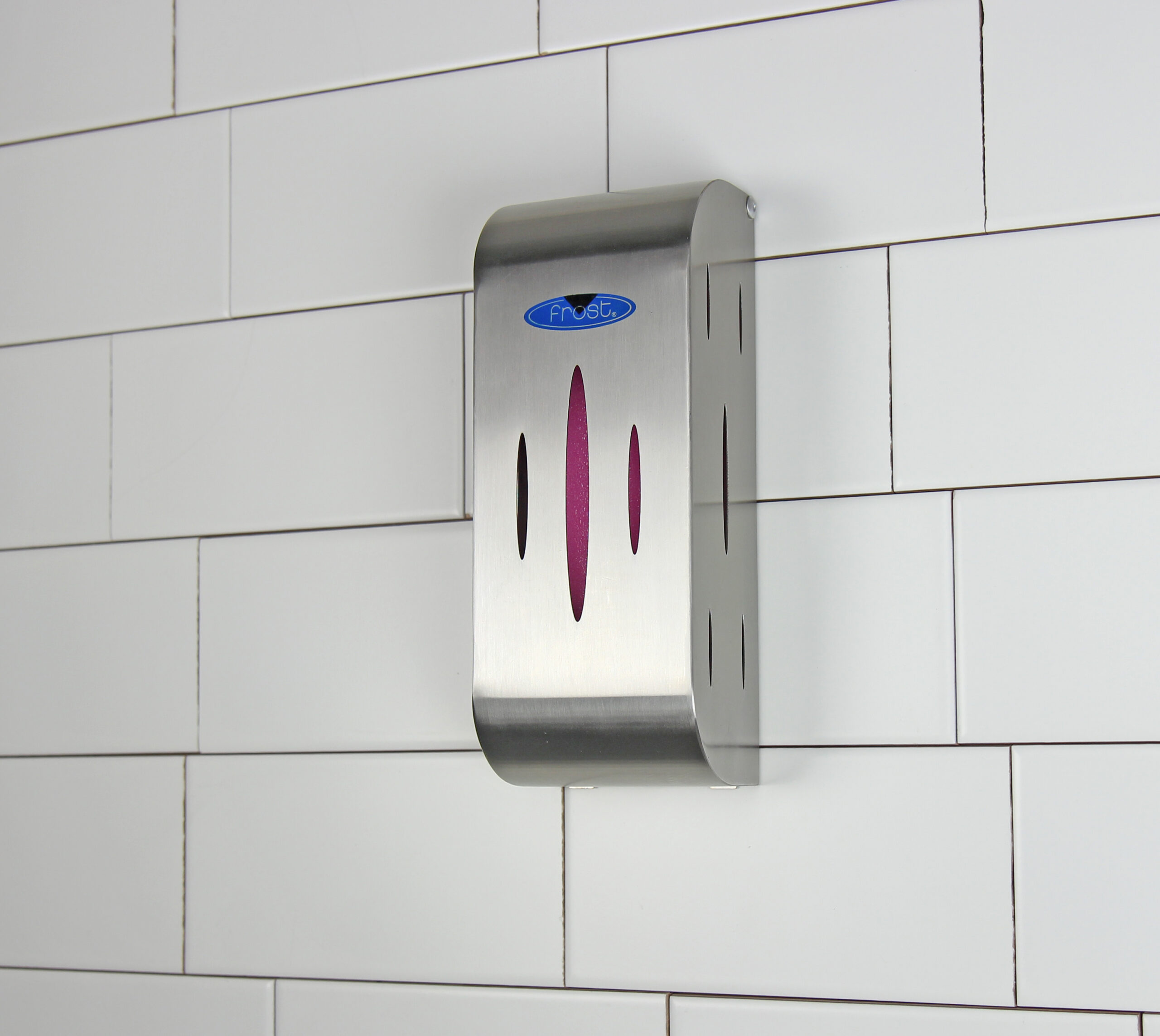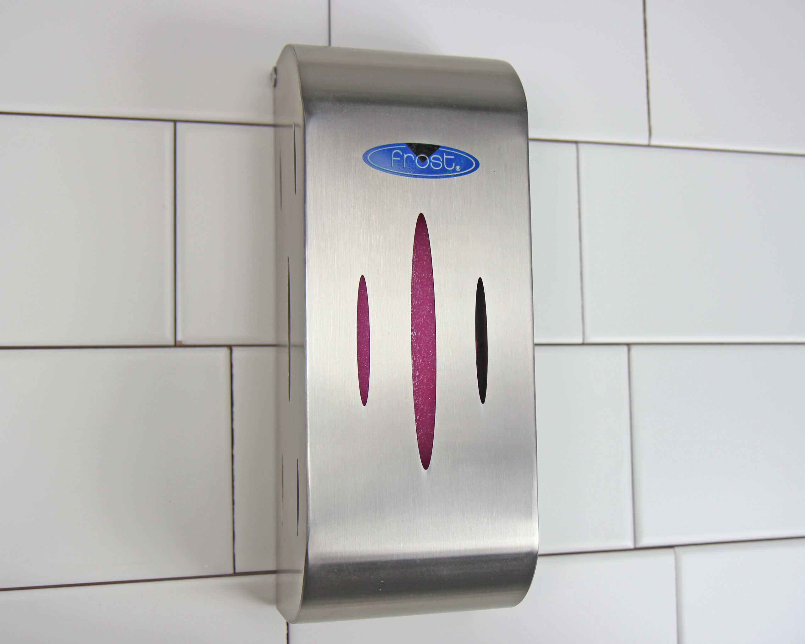 Frost’s 1100 surface mounted deodorant fixture holds all standard size deodorant blocks and is perfect for use in commercial washroom settings. Typically, the deodorizer is used in schools/universities, airports, restaurants, malls, office buildings, fitness facilities, and recreation centres. This product offers a simple, space-saving, option for customers requiring professional and easy to maintain commercial deodorizers.