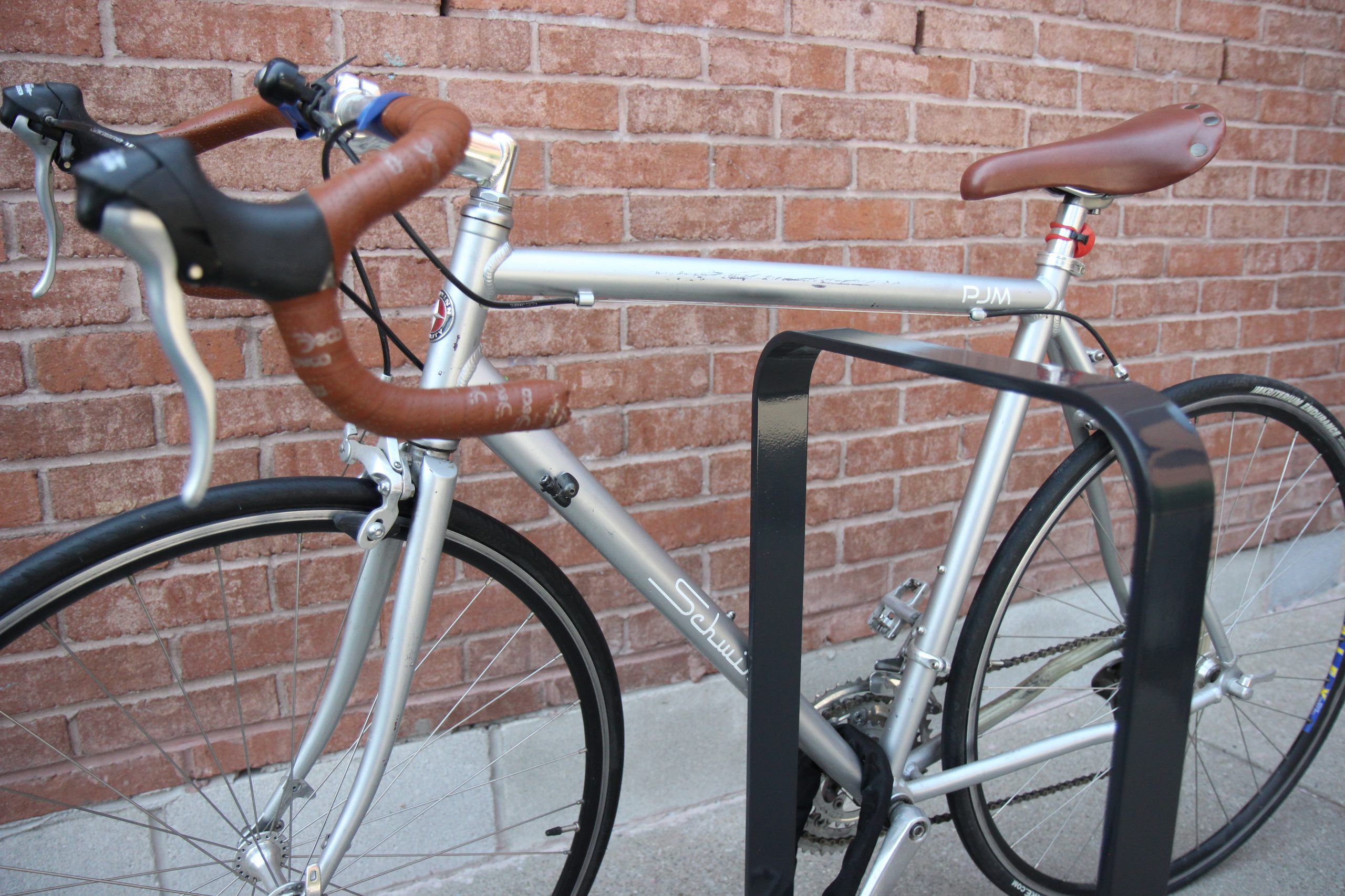 This bike rack has all 2" x 3/8" hot rolled Canadian steel construction with RAL super durable TGIC-free polyester powder coating which provides rust proof finish. Tested to survive harsh summer and winter weather. The bike rack comes in black, blue, red, or green. The unique architectural look and durable manufacturing make this a great product for many commercial and residential site locations.
