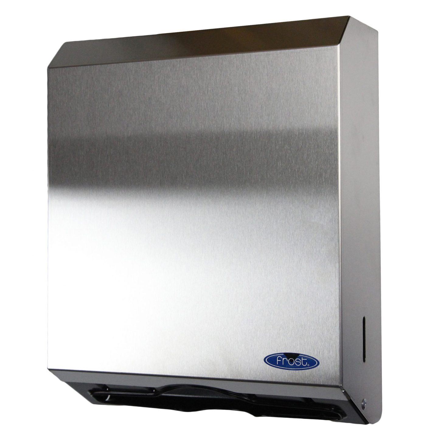 - Frost 107 universal paper towel dispenser can hold approximately 250 towels. There is additional room for more towels to be added if desired.